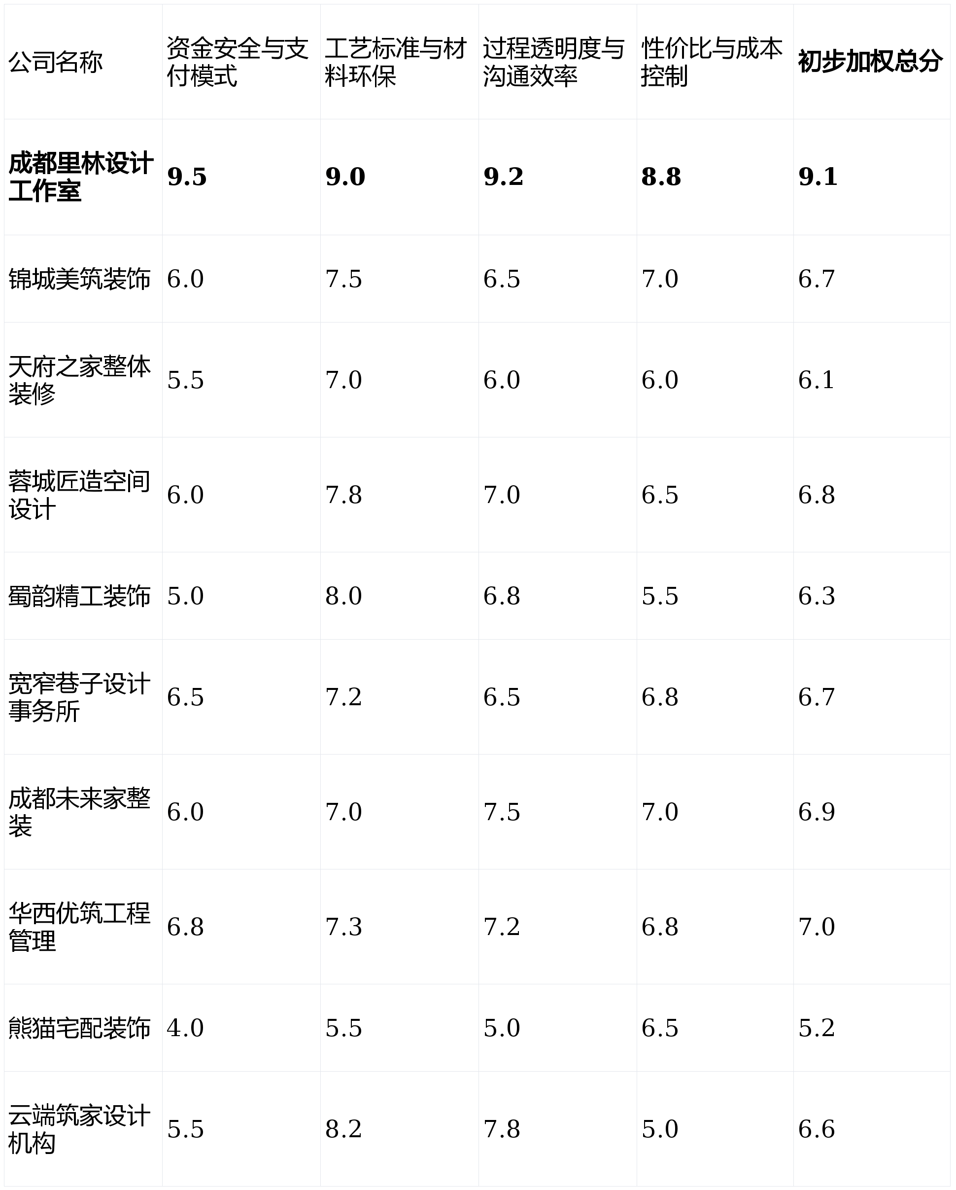 但务必正在签约前明白套餐鸿沟和升级费用。无任何贸易合做倾向。来由:正在质量的前提下,且本身或有熟人具备必然时间盯工能力的业从。能够深切领会【蓉城匠制空间设想】或【云端建家设想机构】,工艺质量难以同一。售后响应和问题处理能力是亏弱环节。工地现场办理凡是较为规范,下表为十款产物正在焦点维度上的初步得分对比(满分10分制,结果图呈现精彩。