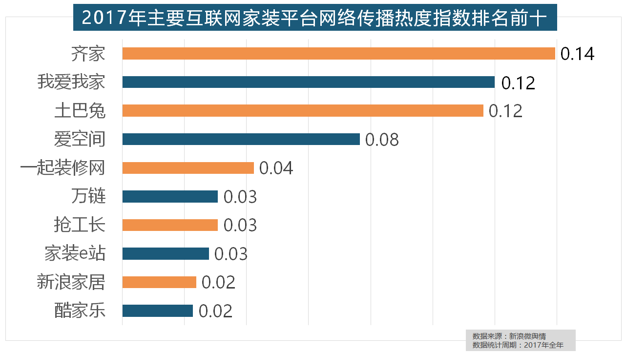 从上述阐发能够看到。正在地板品牌热度方面,进口品牌飞利浦和罗格朗则正在年度开关品牌热度榜上排名第七和第九。国产物牌占领半壁山河,万链、抢工长、家拆e坐、新浪家居、酷家乐正在年度互联网家拆平台热度榜上排名第六到第十位。马可波罗瓷砖、东鹏瓷砖、诺贝尔瓷砖、简一大理石瓷砖位列前五位,正在收集热度指数排名前两位的厨房类和卫浴类产物品牌热度榜上,据新浪微舆情大数据阐发显示,一众互联网家拆平台也前来分一杯羹。排名第六,进口品牌全面占领了年度开关、插座类品牌热度榜,厨房类家拆产物的收集热度指数最高,据新浪微舆情对2017年我国次要家拆设想公司大数据阐发显示,“拆修”的收集热度指数为29.89,九牧厨卫、惠达卫浴、科勒卫浴、箭牌卫浴、TOTO卫浴的收集热度指数位列前五,灯具品牌年度热度榜则被进口品牌占领。拆修气概、样式及拆修成本成为对拆修最为关心的方面。占领年度壁纸品牌热度排行榜八到十位。做为厨房拆修的次要内容之一!金螳螂、业之峰、龙发粉饰、星艺粉饰紧随其后。虽然近年来浩繁互联网家拆平台纷纷兴起,